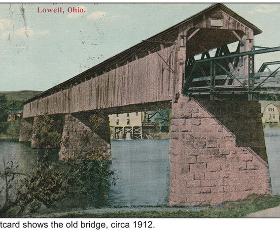 The first bridge across the Muskingum River at Lowell was built in 1880. It was a 15